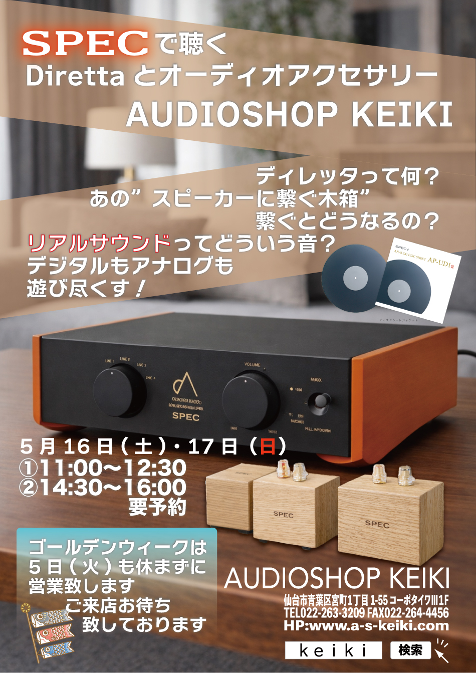 *アコースティックリバイブ製品、他アクセサリー試聴貸し出し品常備中。